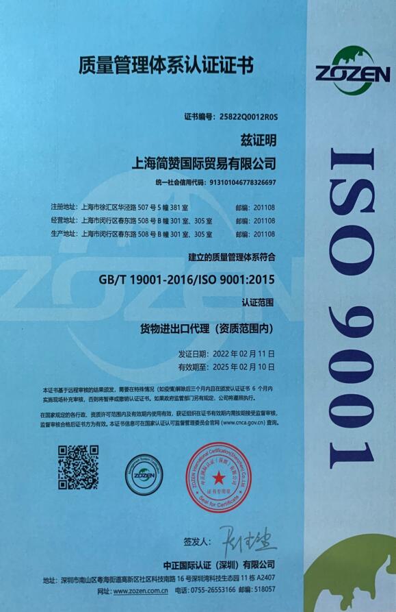 簡贊集團內(nèi)部全面執行(xíng)ERP-WMS信息化(huà)業(yè)務系統,通(tōng)∞過ISO9001, ISO14001等管理(lǐ)體(tǐ)系全局性整合各個(gè)部門(mén)的(☆de)日(rì)常操作(zuò)。